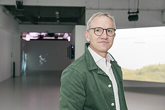 "James Purnell at the LCF21 digital Graduate Exhibition at Victoria House Basement 2021, London Photograph Ana Blumenkron" by University of the Arts London - CC BY-SA 4.0