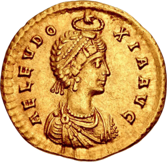 Aelia Eudoxia was Eastern Roman empress by marriage to the Roman emperor Arcadius. The marriage was arranged by Eutropius, one of the
